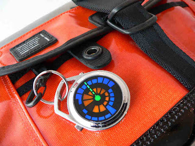 Tokyoflash Japan präsentiert eine aufregende Innovation auf der traditionellen Taschenuhr - Kisai Round Trip - mit einer unwiderstehlichen dunklen Linse, hellen Digitalröhren und einer neuen Art, die Zeit zu sehen. Tragen Sie eine Rundreise an Ihrem Schlüsselbund, Ihrer Schlüsselkette oder an einer Kette in Ihrer oberen Tasche wie eine traditionelle Taschenuhr. Der Bildschirm wird schwarz geraucht, bevor die Timing-Taste gedrückt wird, um die Anzeige zu entzünden, die die mehrfarbigen Röhren-LEDs in einer rotierenden Animation beleuchtet, bevor die Zeit angezeigt wird. Der innere Ring der orangefarbenen Blöcke stellt Stunden in derselben Position wie Stunden auf einem Ziffernblatt dar, der äußere Ring der blauen Blöcke stellt drei Minutenintervalle in derselben Position wie Minuten auf einem Ziffernblatt dar. An der Unterseite sind zwei Minuten lang grün dargestellt, um die genaue Uhrzeit zu erhalten.